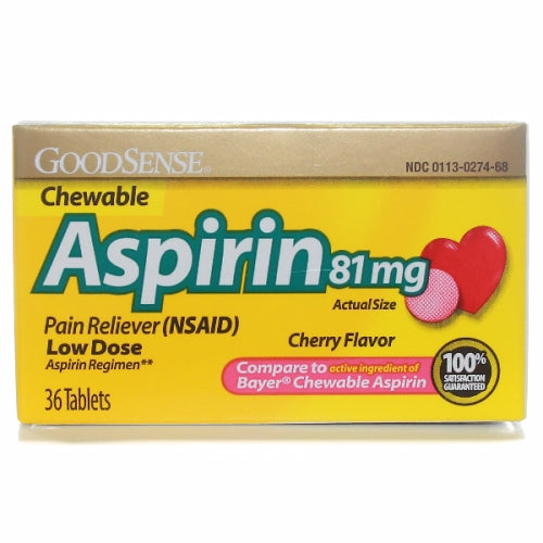 Good Sense, Chewable Aspirin, 81 mg, Orange Flavor 36 Tabs